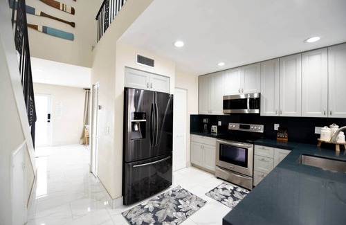 Rest & Relax in this coastal-inspired home-away from home. Features two gorgeous Suites each with a full bathroom, SMART TV & private balcony. Fully stocked kitchen, 65" SMART TV, ultra-fast 1Gb Internet, and lounge area. Premium amenities and top hospitality via your 5-Star Superhost. Sparkling Clean & fully compliant with all of AirBnb's sanitation & safety protocols. We are exempt from hosting service animals and pets due to health reasons. Just 5 min from the beach and 15 min from airport. The space is second to none in cleanliness, comfort, and aesthetic design. Most of our guests tell us "this is the best AirBnb I've ever stayed at" and "the pictures don't even do it justice!" The entire main floor is marble and porcelain, designed to make any guest feel like they're in the lap of luxury while maintaining a homey-coastal atmosphere. Kitchen: Fully equipped with a big fridge, oven, stove, microwave, dishwasher, coffee machine, and toaster. Plenty of new cutlery and cooking utensils are at your disposal so you have everything you need to prepare the perfect meals... or get take-out. Your choice! Lounge: A great place to hang out, get some work done, or just surf the web while you sip on some the beverage of your choosing. Includes a desk and chair for laptop users. Bedrooms: Brand new hotel-grade mattresses, all new furniture, and pleasant décor in each bedroom. Not to mention a separate bathroom with showers and amenities. Fine decoration and grand furniture make each suite a jaw-dropping oasis of comfort and style. Flat screen SMART TVs are wall-mounted in each bedroom and have Apple TV and Chromecast for easy sharing, as well as your favorite apps like Netflix and YouTube. Did I mention that each bedroom has its own balcony? It does. Front Patio: The best place to start your day and end your day is outside! The patio is your space to hang out outdoors, eat, play games, or do what you do. Yes, we also have an egg-chair. Your welcome. :) Living Room: Flat-screen TV and seating for 10, hang out on the couch and watch the game or curl up for a movie night! (Comcast TV and Ultra-Fast 1 Gigabit Internet included) Backyard Patio: Guests are welcome to use the state-of-the-art Weber BBQ Grill. They can also hang out under the evening lights in the outdoor lounge area. You have full access to the entire space, including front patio, and bedroom balconies. I like to greet my guests when they arrive, introduce myself, and offer a quick tour of the space. I can also help with any bags and offer recommendations. Hollywood has a bunch of cool spots that you probably wouldn't find on your own :) The neighborhood is calm and mostly quiet. It's walking distance to Downtown Hollywood, close to the beach, and right between Miami and Fort Lauderdale. Free Street Parking is available directly in front of the unit. Reach out to the host if you require additional parking or are expecting guests. Public City Bus stop is just 1 block away, and there is a Trolley that takes you to the beach that leaves from Young Circle (10 min walk). Of course Uber and Lyft are always great options and readily available!