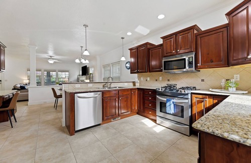 Fully stocked kitchen with utensils, pots/pans, dishes, Keurig, and much more.