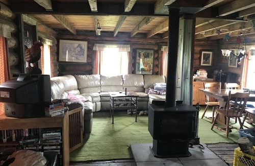 The heritage farm house is very private. There’s a bbq on the deck and picnic table. As you enter the cabin there’s a full kitchen, living room and dining room and a the bathroom is located at the back. There’s plenty of board games, a collection of vhs movies and tv wth a built in player. Upstairs there’s 4 single beds. We supply linens and towels. Enjoy the campfires every second night at the main lodge. Your also welcome to join in for chores and learn to milk our dairy cow and bottle feed our calves. We offer horse back riding plus cheese making for a extra cost.