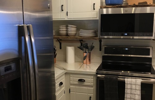 The kitchen has been renovated (2018) with SS appliances including induction range/ convection oven. All kitchen furnishing are new and great quality. You will also find an instant pot, crab leg utensils, Ninja blender and a Sous Vide immersion circulator. Any thing you want to cook with, you should be covered! (5 dishwasher pods provided, 1 roll paper towel provided, 1 trash bag provided)