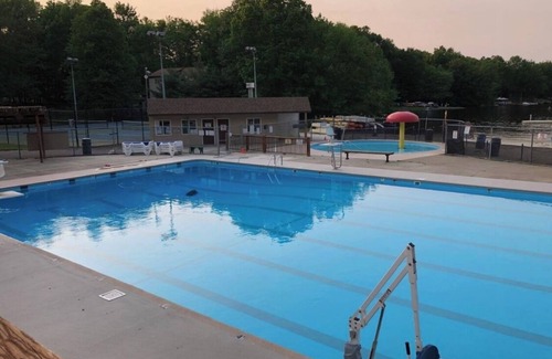 Yes, this Lake Ariel ski chalet has a swimming pool. Check the Facility Overview section for details about the pool and other available facilities.