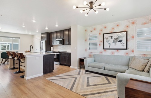The second floor is your main living area, dining space and a kitchen stocked with all the essentials. Stream all of your favorite accounts on the FireTV, or relax on the covered deck while you overlook the park and the open space at the end of the street.