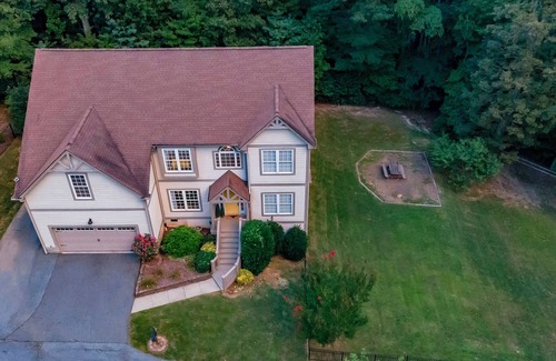 Step outside into a world of wonder with a professionally-installed firepit surrounded by majestic boulders that double as seating. Enjoy the fresh air on a large covered deck (open, no screening) equipped with outdoor dining for ten. And for the thrill-seekers among you, there's a ninja obstacle course, zipline, and monkey bars to keep everyone entertained!