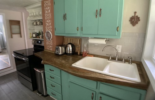 There is a full kitchen with new stainless steel appliances and mostly anything you should need to cook! You will also find an electric tea kettle and French press to help you get going in the morning! Please note there is not a microwave, just a toaster. We ask that you leave everything in the condition that you found it.