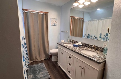All queen and the king beds are brand new sleep number beds to ensure that your sleep is high quality. The Homecoming has three queen beds, one king bed, two single twin beds and a futon for a comfortable stay for 12 guests. The home has one half bath on the main floor, one full bath with tub and shower on the 2nd floor and another 3/4 bath on the 2nd floor with a shower.