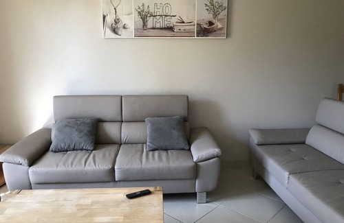 House equipped with a television. In the kitchen, you have an oven, a microwave, a fridge-freezer and a dishwasher.