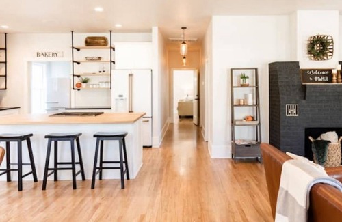 The Hub is a one of kind, historic, turn of the century, craftsman style home that's been completely renovated. With its open concept, it is a perfect space to gather, relax, celebrate, create, and rest. Enjoy a private master suite with an additional private living area and guest bedroom in the back area. Huge open living/ dining room/ kitchen/ entertaining space in the front, equipped with new furnishings and custom appliances.