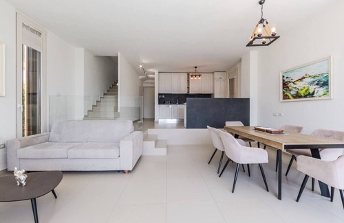 Step into a newly renovated, modern 2-bedroom, 2-bathroom villa nestled within the prestigious Green Coast Resort in Palasë. Designed with comfort and style in mind, The Ionian Villa features open living spaces, elegant decor, and all the essentials for a luxurious coastal escape. Floor-to-ceiling windows fill the space with natural light, and a private terrace invites you to unwind in the fresh sea air.