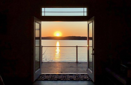 The EAGLE'S NEST is a cozy 2 bedroom/1 bath guest house with a wrap around deck, open concept kitchen, dining room and living room lined with sliding glass doors providing amazing views of the lake. Each of the 2 bedrooms have queen beds and the living room has a comfortable queen size sofa sleeper.