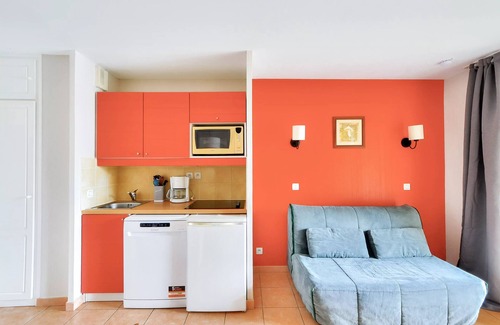 Details: Wi-Fi access : Free access Playground for children : Playground located within the residence with a swing, three mobiles and a house with slide (for children aged 2-7). Pets allowed : In some accommodation extra fee: 65 € / animal / week. 10 € / animal / day (stays from 1 to 6 nights). Baby Kit : Subject to availability: 1 baby folding bed (norm NF EN 716), 1 baby chair (from 6 months), 1 changing mattress, 1 stroller: contents may vary depending on the residences) - rates to be seen with reception Maintenance kit : Included - contents may vary according to residences: sponge, washbasin, multi-use product vial, flask of hand dishwashing liquid product, dishwasher tablet and towel. Bedding : In addition - contents may vary depending on the residences: drap-housse, sheet or duvet cover and pillowcase. Towels : Extra charge. Possibility of changing the daily linen available, ask the reception to know the rates. Beds made on arrival : Extra charge. Final cleaning : Extra charge. Must be carried out at the end of the stay, either by the guest or by paying the service at the pre-check-in or on arrival. Number of stars Car park Swimming pool : Open from May 19 to October. Heated Near airport : Bordeaux-Mérignac Airport #BOD (166.2 km), Toulouse-Blagnac Airport #TLS (121.2 km) Close trade Tourist tax (surcharge) : To be paid from your customer area, variable amount depending on the locality. Free for children under 18. Television : In all dwellings Internet access Pets Allowed : Extra charge. kettle Coffee maker Deposit (in euros) : 500 Heating Cooked Smoke detector Floor Exposure : North - East Toaster Dishwasher Bedding : Extra charge. Final Cleaning : Extra charge. Must be completed at the end of the stay, either by the customer or by paying for the service at the pre-check-in or on arrival Microwave oven Number of bedrooms : 1 Number of pieces : 2 Number of toilets : 1 Number of bathroom : 1 Car park Cooking plate Fridge Dining Room - Seating Capacity : 4 Surface (m²) : 28 Television Terrace Dishes and cutlery View : Swimming pool