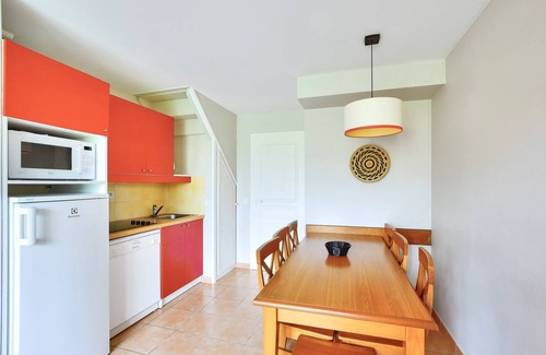 Details: Wi-Fi access : Free access Playground for children : Playground located within the residence with a swing, three mobiles and a house with slide (for children aged 2-7). Pets allowed : In some accommodation extra fee: 65 € / animal / week. 10 € / animal / day (stays from 1 to 6 nights). Baby Kit : Subject to availability: 1 baby folding bed (norm NF EN 716), 1 baby chair (from 6 months), 1 changing mattress, 1 stroller: contents may vary depending on the residences) - rates to be seen with reception Maintenance kit : Included - contents may vary according to residences: sponge, washbasin, multi-use product vial, flask of hand dishwashing liquid product, dishwasher tablet and towel. Bedding : In addition - contents may vary depending on the residences: drap-housse, sheet or duvet cover and pillowcase. Towels : Extra charge. Possibility of changing the daily linen available, ask the reception to know the rates. Beds made on arrival : Extra charge. Final cleaning : Extra charge. Must be carried out at the end of the stay, either by the guest or by paying the service at the pre-check-in or on arrival. Number of stars Car park Swimming pool : Open from May 19 to October. Heated Near airport : Bordeaux-Mérignac Airport #BOD (166.2 km), Toulouse-Blagnac Airport #TLS (121.2 km) Close trade Tourist tax (surcharge) : To be paid from your customer area, variable amount depending on the locality. Free for children under 18. Television : In all dwellings Internet access Animals not allowed kettle Coffee maker Deposit (in euros) : 1200 Heating Cooked Smoke detector Floor Exposure : North Toaster Dishwasher Bedding : Extra charge. Final Cleaning : Extra charge. Must be completed at the end of the stay, either by the customer or by paying for the service at the pre-check-in or on arrival Microwave oven Number of bedrooms : 2 Number of pieces : 3 Number of toilets : 1 Number of bathroom : 1 Car park Cooking plate Fridge Dining Room - Seating Capacity : 6 Hair dryer Surface (m²) : 39 Television Terrace Dishes and cutlery View : Forest