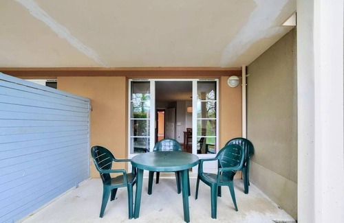 Details: Wi-Fi access : Free access Playground for children : Playground located within the residence with a swing, three mobiles and a house with slide (for children aged 2-7). Pets allowed : In some accommodation extra fee: 65 € / animal / week. 10 € / animal / day (stays from 1 to 6 nights). Baby Kit : Subject to availability: 1 baby folding bed (norm NF EN 716), 1 baby chair (from 6 months), 1 changing mattress, 1 stroller: contents may vary depending on the residences) - rates to be seen with reception Maintenance kit : Included - contents may vary according to residences: sponge, washbasin, multi-use product vial, flask of hand dishwashing liquid product, dishwasher tablet and towel. Bedding : In addition - contents may vary depending on the residences: drap-housse, sheet or duvet cover and pillowcase. Towels : Extra charge. Possibility of changing the daily linen available, ask the reception to know the rates. Beds made on arrival : Extra charge. Final cleaning : Extra charge. Must be carried out at the end of the stay, either by the guest or by paying the service at the pre-check-in or on arrival. Number of stars Car park Swimming pool : Open from May 19 to October. Heated Near airport : Bordeaux-Mérignac Airport #BOD (166.2 km), Toulouse-Blagnac Airport #TLS (121.2 km) Close trade Tourist tax (surcharge) : To be paid from your customer area, variable amount depending on the locality. Free for children under 18. Television : In all dwellings Pets Allowed : Extra charge. kettle Coffee maker Deposit (in euros) : 400 Heating Cooked Smoke detector Floor Toaster Dishwasher Bedding : Extra charge. Final Cleaning : Extra charge. Must be completed at the end of the stay, either by the customer or by paying for the service at the pre-check-in or on arrival Microwave oven Number of cabins : 1 Number of bedrooms Number of pieces : 1 Number of bathroom : 1 Car park Cooking plate Fridge Dining Room - Seating Capacity : 4 Surface (m²) : 28 Television Terrace Dishes and cutlery View : Other Internet access