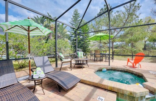 Relaxation awaits in the private lanai, or sunbathe on the sundeck while enjoying homemade margaritas from our Margaritaville maker. The tropical paradise setting includes a large pool and hot tub, perfect for ultimate relaxation.
