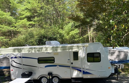 The Light & Cozy Glamper is the perfect compromise for guests who enjoy tent camping vacations but want to try out a travel trailer!!! You will be able to hear the rain on your tents at night or the crickets chirping while enjoying a full bathroom, living room and kitchen along with LOTS of storage space!