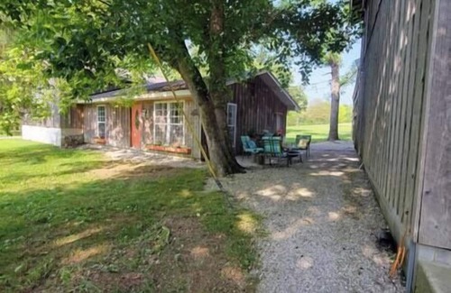 Take it easy at this unique and serene getaway. We have a beachy boho feel that is comfortable and stocked full of amenities. The creek area is perfect for lounging in the hammocks on hot summer days. The water stands about 3 feet deep and great to take a dip in or float. (full sun from noon til two) Please be respectful of campers that may have reserved their stay at the creek. At night, hang out by the fire pit under the Edison's on warmer nights. Open floor plan downstairs and two bedrooms and 1 bath upstairs with a built in ceiling heater. Full bath and laundry is located downstairs. Only 5 steps to climb to the bedrooms and there is a handrail on both sides. Stocked kitchen with dining table. There is also a unique bar area that seats four. The Kids Cove is a small nook with toys for the little ones to hang out. A twin size air mattress is in bedroom closet. The same room also has a full size desk to work at if needed. Guest are welcome to explore the creek area and take advantage of the swimming hole in the hot summer months. There are also two picnic tables available. If campers are present, they have first access to the creek area. Please be respectful. I let the guest determine the interactions and follow their lead. Guests are in a rural setting on about 10 acres. Neighborhoods are close by, but you have plenty of privacy. Car, but you will see a gator or tractor traveling to the nearby farms. If you have pets that are not fond of other dogs or cats, please let us know prior to arrival. This is not a problem, just precautionary as we have pets of our own on the property. We just want to make sure your pet(s) are stress free during your stay with us. If your pet(s) prefer to not make friends, we will try to not disturb them when were are outside.