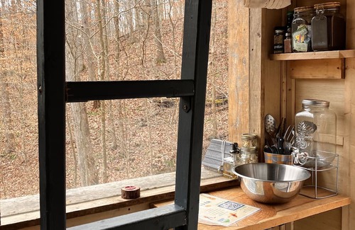 Amongst a minimalistic stocked kitchen (see amenities list) it includes a one burner butane stove (butane NOT provided), french press, and wood stove to cook on. We offer a collection of teas, and coffees, for you to enjoy. Bring your own drinking water, and ice. We provide a cooler indoors!