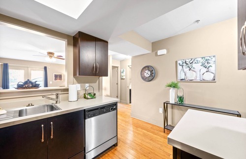 This fully-furnished 2-bedroom, 1-bathroom unit is located on the first floor for easy access (no stairs). We offer a sofa pullout for additional sleeping, so we can accommodate small-medium sized groups up to 6 guests. The kitchen offers a full-size stove/oven, overhead microwave and full-size refrigerator/freezer. The main living & dining area provides plenty of space to enjoy a meal, relax on the couch, and stream your favorite shows! The bathroom is stocked with hotel-like amenities and emergency toiletries in case you forgot anything at home as well!