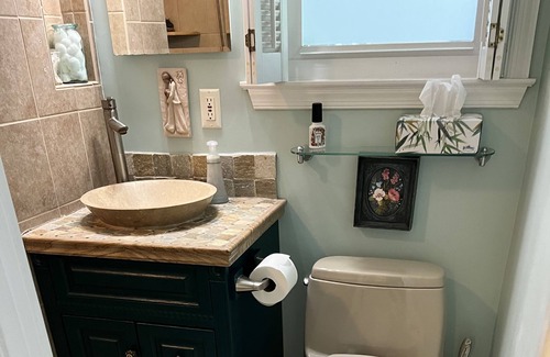This stylish and clean ranch home is centrally located in Virginia Beach, five minutes from multiple interstate exits, shopping, parks, etc. 15-25 minutes from multiple beaches, venues, and other cities such as Chesapeake or Norfolk. Able to sleep six comfortably, 2 bedrooms plus very nice IKEA couch/sleeper sofa.. Also within 15 mins of oceanfront, The Love Shack is great for business travelers and vacationers alike. Large fenced yard plus off street parking in a quiet neighborhood. Keyless entry, owner has excellent reviews on other sites. The spacious primary suite and comfortable beds are only a couple highlights. The house is filled with character and vintage decor.