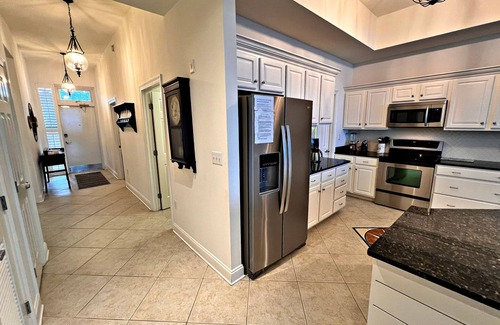 The interior of this condo is inviting and spacious. It features three roomy bedrooms. The master bedroom has a king-sized bed, a flat-screen TV, an attached bathroom with a walk-in shower and a large tub, and a balcony with views of the pool and the bay. The second bedroom has a queen-sized bed, an attached bathroom, and a flat-screen TV. The third bedroom features two twin beds, a flat-screen TV, and a private attached bath. The open and comfortable living area boasts ample seating around a gas log fireplace. The dining area offers seating for the entire family and provides a beautiful view of the pool and the harbor, which you can also enjoy from your private first-floor balcony. The kitchen is fully equipped with plenty of dishes and cookware, as well as a spacious walk-in pantry. A full-sized laundry room inside the unit adds to your convenience, and free Wi-Fi is available during your stay.