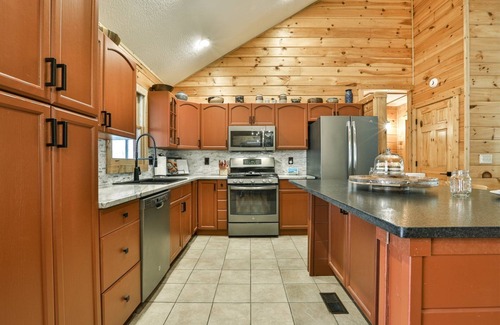 Fully equipped kitchen: Refrigerator, stove, oven, microwave, dishwasher, toaster, coffee maker, dishes, glassware, utensils, cutlery, pots, and pans. Linens for each bed, 2-bath towels, 1-hand towel, 1-washcloth per person listed on the guest list, dresser or closet for clothing storage, central heat & air, washer/dryer, vacuum and/or broom and dustpan, mop, internet, and propane gas grill. In addition, we provide a complimentary start-up supply of Toilet Tissue (1 roll per bathroom), 1- roll of paper towels, 4- kitchen garbage bags, dishwasher detergent, dishwashing liquid, and laundry detergent for at least 2 loads. Many of our cabins include more than this basic list of inventory items. The only items you'll need to bring will be food, beverages, and condiments.