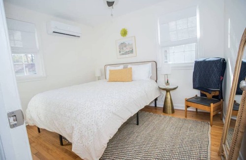 Walk on in & make yourself right at home. you've walked into our living area and to the right you will see the kitchen. In the living area we have included several office supplies to make work from home easy and convenient. The Smart TV in is mounted over the fireplace & visible from the living room, kitchen island, & dining area. Hulu, Netflix, Amazon, Pandora, Etc. are loaded. The kitchen is well equipped not only including a coffee pot, stove, dishwasher, fridge etc. but we also appoint our kitchen with tons of great extras including our special Mettā Blend Coffee - "Stir", roasted in Richmond, VA by Afterglow Coffee Co-Op. Additionally, there is a selection of creamers & sweeteners, a coffee grinder, olive oil & salt & pepper as well as a dishes and cutlery. Down the hall you find two Queen bedrooms and a bathroom. The beds are made with our luxurious bamboo silk Mettā Home brand sheets and these neat little moveable LED bedside lamps. You're sleeping on Metta Home mattresses and pillows too! The bathroom has shampoo, conditioner & shower gel as well as Metta Home towels, wash cloths and bathmats. All of our Metta Goods products are available to meet you back at your house through our website Metta-Home. com. You will find the bathroom has a hair dryer and first aid kit among other thoughtful touches. Please note the mini splits unit on the walls are operated via a remote control. Remotes should all be left where you found them. These serve as an economical and energy efficient heating and air-conditioning solution. Please enjoy our home as your own and treat it with respect. We have done everything to create a sanctuary for you and your family and friends. Please remember to leave a friendly review if you enjoyed your stay and check out Metta-Home. com to see our other Metta Stays!