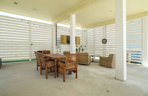 The fun never ends at The Nauti Shark! The spacious living room with sectional couch and big-screen TV is perfect for winding down after days in the sun. Kids will love the plenty of toys and board games available, while adults can enjoy the outdoor lounge area complete with flat-screen TV and dart board. From indoor relaxation to outdoor entertainment, there's something for every age and interest, ensuring everyone stays engaged and entertained throughout their coastal getaway.