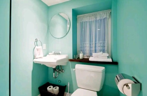 Walls color is relaxing light blue and contrasts with original exposed house wood beams and post which gives the Nook a lot of character. Enjoy privacy as there is a separate entrance to the side of the house, 1 bedroom with a spacious king size nook bed that serves as both a bed & a great place to read a book or a magazine by the window or just sit back and watch TV or listen to your favorite radio station or your music. It has great size full bathroom and a microwave, kettle, coffee maker, toaster and mini fridge.