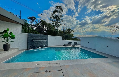 Welcome to your Private Oasis, Just 5 minutes from Provenza and Lleras Park. 4 Bedroom Mansion Features A Exotic Large Pool, Large gathering Area, Garden, Sun Lounge Beach Chairs. This property has A great Pool Area and Guest are Allowed at no extra cost.