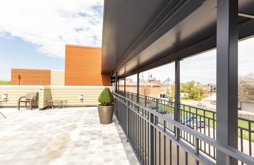This property boasts an open plan layout and a private patio, perfect for relaxing and enjoying the fresh air. The complex also has a rooftop lounge area with patio furniture, grills, and fire pits, providing you with a stunning view of the city and a perfect spot to gather with friends and family.