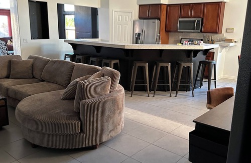 Experience Desert Hot Springs like a local in this 3-bedroom house. This fabulous property boasts a king bed, sofa bed, queen bed, and twin bed, ensuring a comfortable stay for all guests. With amenities like heating, AC, and a hairdryer, you'll feel right at home. The 2 bathrooms feature a shower, bidet, and another hairdryer for added convenience. Relax in the enchanting living room with a sofa bed for extra sleeping space. We hope you'll enjoy your stay at our house.