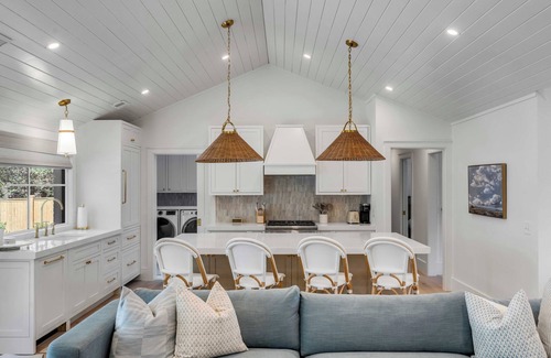 Luxury coastal escape in Mt. Pleasant’s Cooper Estates! Dual primary suites, 2 king guest rooms, a twin room & 3 full baths. Just 7 mins to Downtown Charleston, 3 mins to Shem Creek, 10 mins to the beach, and 5 minutes to public boat landing! Enjoy a luxurious marble checkerboard pool, spa, outdoor fireplace, grill, and boat parking in driveway. Soaring ceilings, designer kitchen w/ Thermador appliances, and walkable to Shem Creek. Sleeps 12+.
