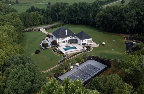Ultra-Luxurious and Entertainment-Ready Manor with Utopian Vibes! Inspired by the luxe comfort of resort living, the estate is equipped with a Tennis Court, Bocce Court, Gym, Theater, Heated 40ft Pool, Jetted Spa, Pickleball Courts, Rubber Playground, Soccer Field, Basketball Court, Volleyball Court, Tether Ball, 100-Yrd Chipping Range, 450-Yrd 5- hole Disc Golf and so much more!! 45 mins from Atl airport, this 8BR/8.5BA 8 acre family residence provides a truly unique experience. Welcome home!