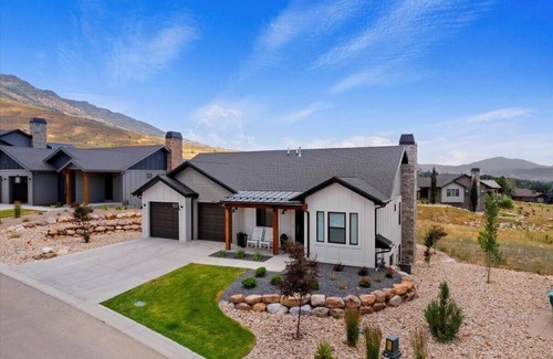 Step inside and be greeted by a warm and inviting atmosphere, with a spacious living area featuring comfortable furnishings and a cozy fireplace, perfect for unwinding after a day of adventure. Large windows showcase breathtaking views of the surrounding mountains, Nordic Valley ski resort, and lake views, providing a picturesque backdrop for your stay.