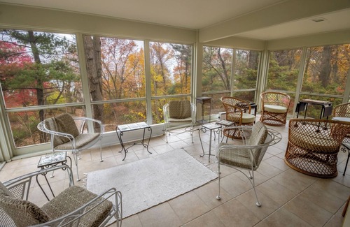 Outside, you'll find a charming pond, seating area, grill, and parking for up to four cars in the driveway.