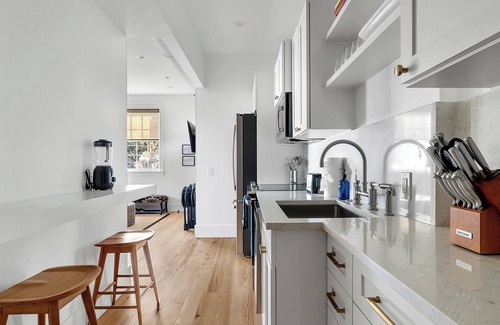 The Space: Welcome to The Petite Helene! This meticulously renovated home in downtown Charleston is just steps away from King Street and major attractions. The open concept living, dining, and kitchen space boasts a mid-century modern aesthetic, and the fully equipped eat-in kitchen includes a built-in coffee bar.