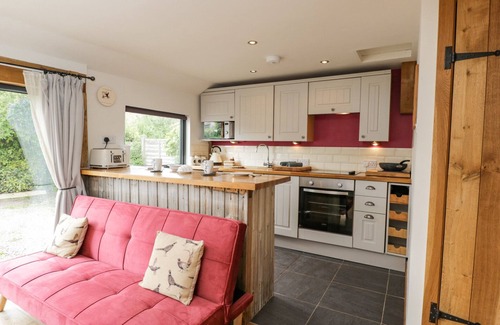 The Pheasants Nest is an immaculately-presented detached, wooden lodge-style cottage located next door to the owner, in Welland, close to Malvern and can sleep two people. This all ground floor property has open plan studio accommodation with a king-size bed, a kitchen, a breakfast bar and a sitting area with a double sofa bed. There is also a family shower room. Outside there is off road parking for one car, lockable bike storage and a private patio area with furniture. The Pheasants Nest is a wonderful holiday cottage. Note: One well-behaved dog welcome.