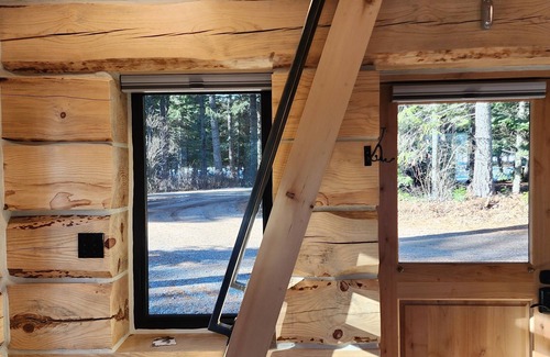 Unwind in Sandpoint at this unique beam tiny home. With WiFi, 2 antique radiators, a washer / dryer, flat iron,and a hair dryer available, guests can relax in comfort. This cozy retreat features a living room with a queen futon for additional space. Swing set play area, walking, & snow shoeing trails right outside your door. Enjoy breath taking views while sitting around the campfire, sitting in the hot tub, or while in the cozy cabin. We hope you enjoy what our place and Sandpoint has to offer. With other scenic play areas nearby, like Schweitzer Ski Resort, Caliber Disc Golf, or Pend Oreille Lake. This retreat shares a private access & drive with a log home residence in view. Access to bedroom is a custom ladder. Linens are mindfully washed in a nontoxic detergent, as well as the bathing products and choice of dishwasher detergents. The pantry is stocked with waffle mix, syrup,coffee and snacks.