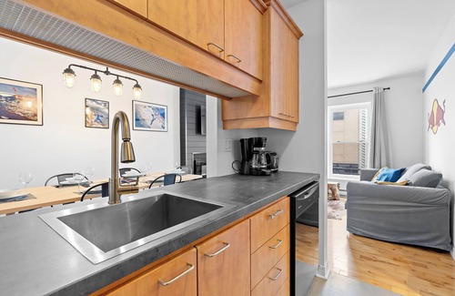 Welcome to our vibrant and stylish Red Bull-themed condo, nestled in the heart of St-Joseph Street, where the city's pulse beats strongest. This energetic neighborhood boasts an array of restaurants, bars, and theaters, ensuring you're never far from the action.