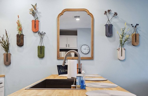 Welcome to **The Retreat** in Downtown Bryan, TX! This 1 Bedroom, 1.5-bathroom charming retreat is just a block away from the heart of vibrant dining and attractions. Enjoy an open floor plan with a plush couch, books, a smart TV, and high-speed Wi-Fi. The fully stocked kitchen includes a coffee maker, cookware, and an eat-up bar. Relax in the fenced yard or work at the desk! The bedroom features a king bed and a spacious bathroom. Your memorable stay awaits!