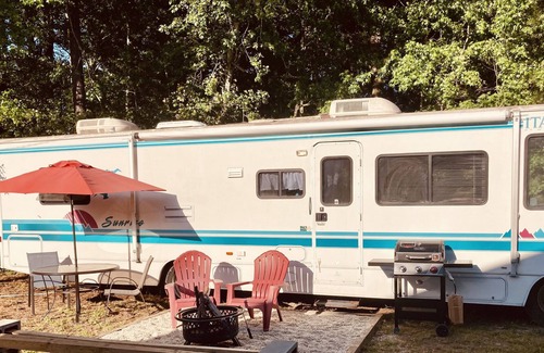Enjoy your own little slice of heaven in this decked out 90’s style Winnebago on the farm. If you love retro, camping and animals this is the place for you. Disconnect by the fire, visit with the critters, or have a 90's movie night with your own VHS player and some of the best classics on film. Just a short drive from 95, Richmond Hill, restaurants and shopping. View the marshes at Fort McCallister State Park or take the 35 minute drive over to Savannah for a fun day trip. Pet friendly (duh!).