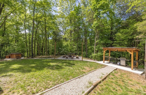 From the living/dining area, you and your guests can access a private deck that is perfect for outdoor dining while taking in the picturesque forest views. The expansive backyard is a highlight of the property, featuring an entertainment area with an outdoor fire pit and plenty of space to roam and play games with the family. Plus, this chalet backs right up to one of Innsbrook’s scenic nature trails!