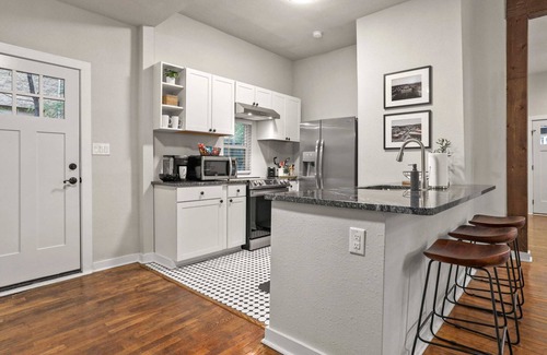 We also manage the neighboring property, making it easy to accommodate larger groups or multiple families. Please let us know if this is something you're interested in—we’d be happy to provide more details.The property is in a duplex and is the upstairs unit. This home is located within walking distance of Dickson Street. Noise can sometimes be an issue, as with any place located near Dickson Street. There is also a train that runs through the center of downtown Fayetteville. The train crossing is located directly next to The Dickson building. Because of this, there is a train horn that sounds occasionally during the day and sometimes at night. We do not anticipate this would be an issue at this property, but we have stocked the property with a noise machine to help with any possible disturbances!