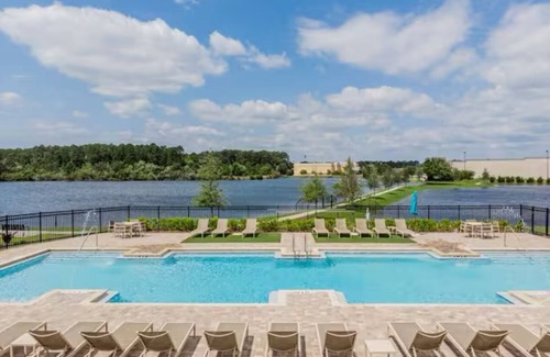 - Endless Summer pool with separate seating areas and a large lakeside pool deck with lounge seating