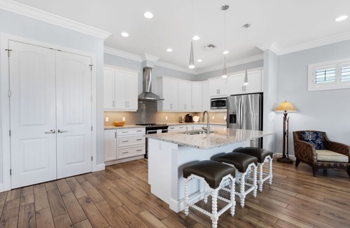 The Seahorse is celebrated for its luxurious take on coastal living standards. Captivating coastal décor, ample space, and beautiful natural light dominate the interior. The property features an inviting open-concept design across all levels and provides plenty of access to exterior balconies for enjoying the fresh air.