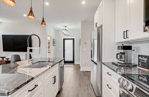 -Fully equipped kitchen with stainless steel appliances, gorgeous granite counter tops, popcorn maker, blender for mixing delicious beverages