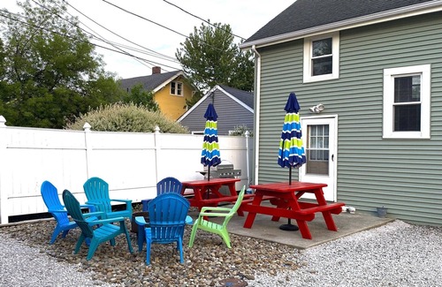 Outside is a small concrete patio with picnic tables, gas grill, and fire pit. Though the area is under renovation by another property owner so conditions cannot be guaranteed at any specific time, shared, private lake access is available at the end of our short street. Use is at your own risk. Guests choosing to visit the lakefront must provide their own beach towels, chairs, and water shoes (strongly recommended). We ask everyone to be considerate of others.