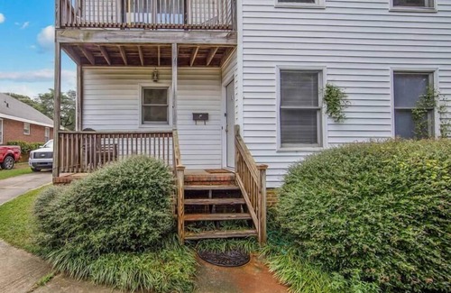 *Summary*--Welcome to The Terry Sanford Guest House C, a beautifully decorated two-story apartment within a historic Haymount property, now thoughtfully divided into three private residences—each with its own dedicated parking and private entrance. Just minutes from local coffee shops, restaurants, and Honeycutt Park, this cozy retreat is perfectly located for morning jogs, evening strolls, or unwinding on the guest-favorite balcony. Inside, you’ll find 2 bedrooms and 2.5 bathrooms, including two upstairs suites with full-size beds, along with a dining room, fully equipped kitchen, comfortable living room, dedicated office space, and in-house laundry. Stocked with fresh linens, soaps, detergents, cookware, and a Smart TV with WiFi, the home has everything you need to relax and enjoy your stay. Historic charm meets modern comfort—your ideal home away from home in Fayetteville!