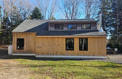 This house has the perfect lawn to play lawn games on. With a gorgeous view, this water is also tidal. You can swim at high tide if you wish, and at low tide it is clam flats. This home provides such a newly constructed, warm feel. There is a large picnic table outside to enjoy the gorgeous Maine weather and a small contained fire pit. The wood stove is not to be used inside the home.