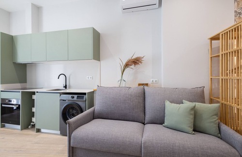 Discover a cosy 32m² apartment located in the heart of Valencia, perfect for couples, groups of friends and business travellers. This modern space is designed to offer a comfortable and practical experience during your stay.The apartment has a bedroom with a double bed and an additional sofa bed, allowing accommodation for up to 4 people with total comfort. It has air conditioning and a practical heat pump to guarantee an ideal temperature in any season of the year.The kitchen, fully equipped, is one of the strengths of the accommodation. It has state-of-the-art appliances such as an induction hob, fridge, freezer, washing machine, oven, microwave, coffee maker, toaster, kettle, juicer and a complete set of kitchenware and cooking utensils.Among its amenities are free WiFi, iron and television. The apartment is prepared for you to enjoy a practical and functional stay, with all basic needs covered.Ideal for those looking for a centrally located and well-connected accommodation in Valencia. Perfect for short trips or work stays, where functionality and comfort are fundamental.Important note: Pets and smoking are not allowed inside the apartment.