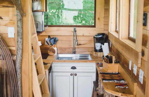 Enjoy the amazing views from a vista point on the property. Designed for up to four guests, The Tree House is the perfect hideaway nestled among the East Tennessee woods. Drift to sleep in your king size bed, and open the full size garage door wall in the morning to breathe in the fresh East Tennessee air.